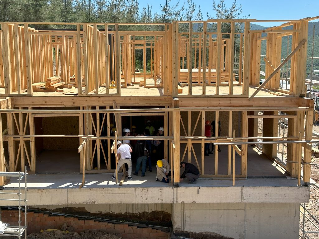 Teorik eğitimler kapsamında, 01.01.2025 tarihinde yürürlüğe girecek olan “Ahşap Binaların Tasarım, Hesap ve Yapım Esaslarına Dair Yönetmelik” kapsamında ahşap yapı projesi yapım kontrol ve denetim esasları ve yapısal ahşapta kullanılacak kerestenin TS 1265’e göre kontrolü ve tasnif edilmesi konularında uzman hocalar tarafından eğitim verildi.