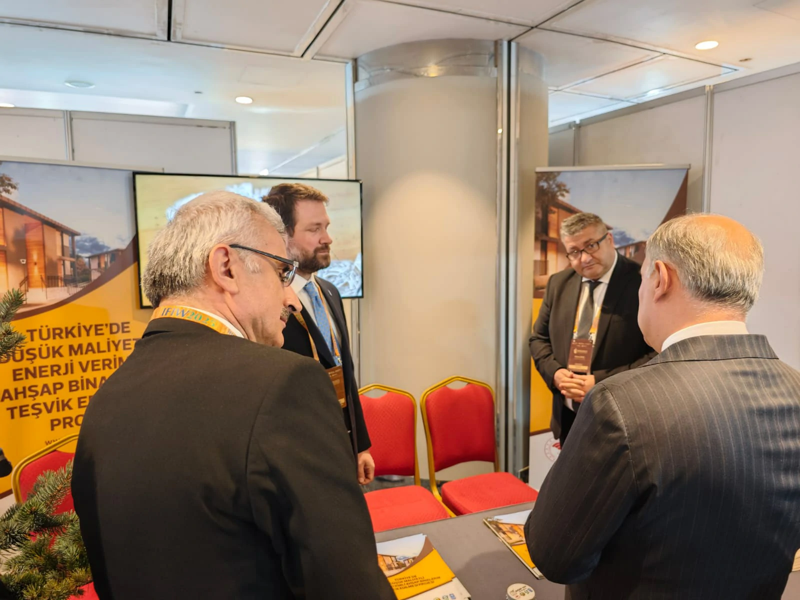 Katılımcılara yapısal ahşap konusunda politika ve hedeflerimiz ile ahşap yapı sistemleri kullanılarak deprem bölgesinde yapılan lojman ve idari bina inşaatları hakkında bilgiler verildi.