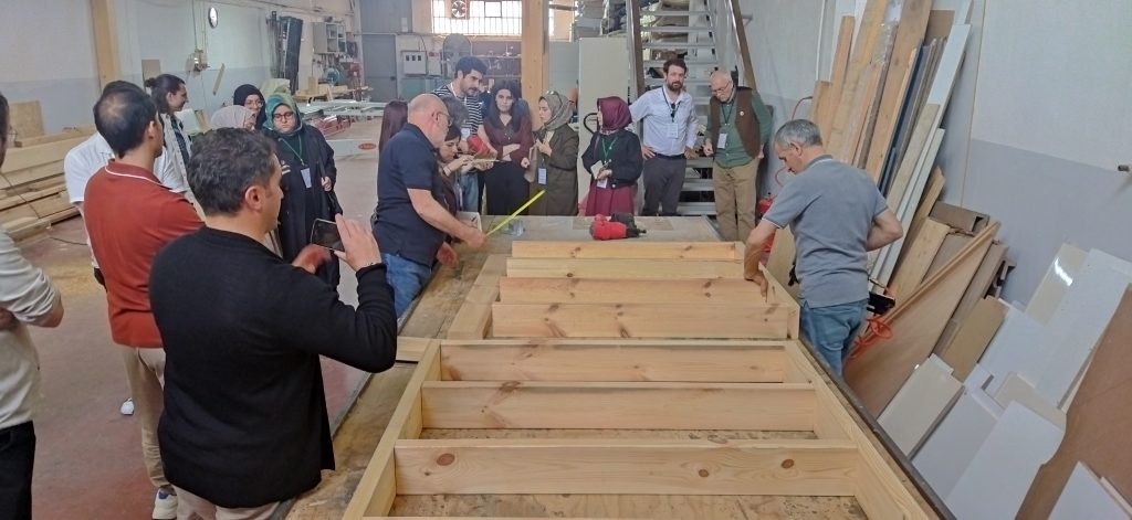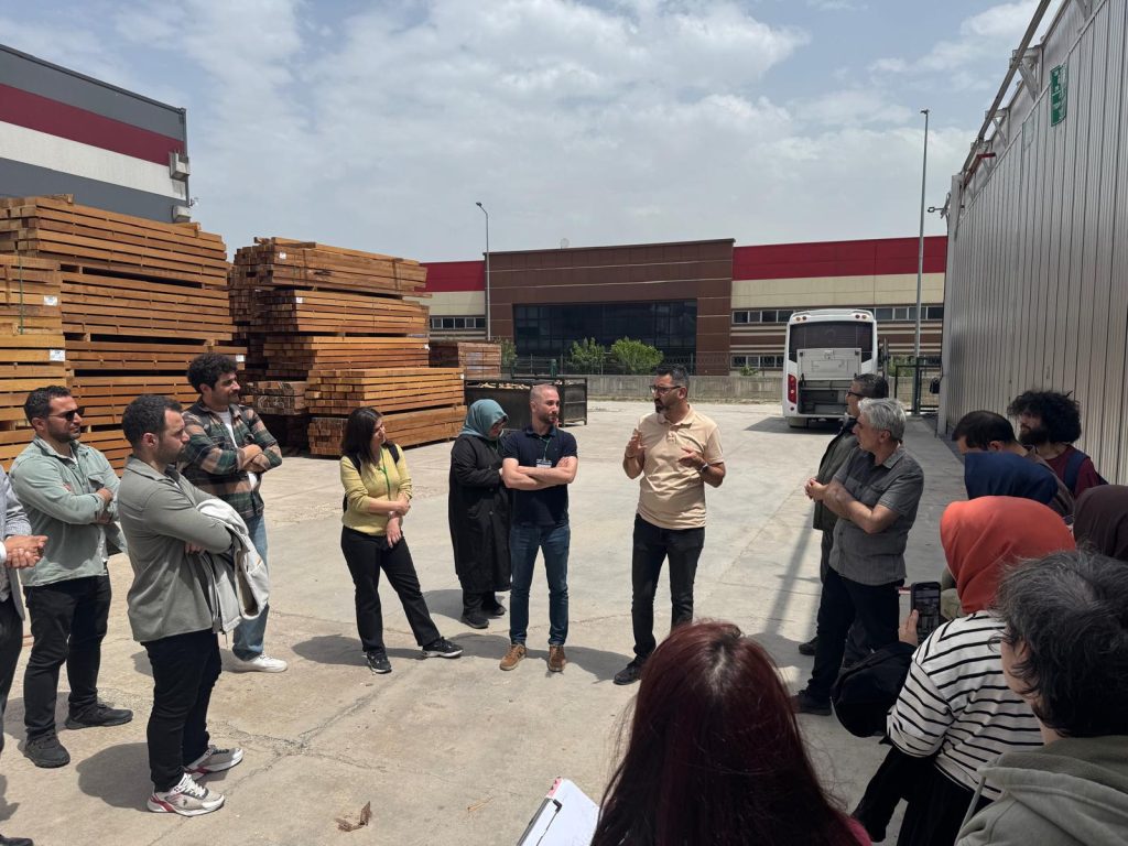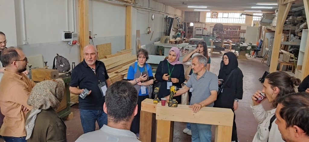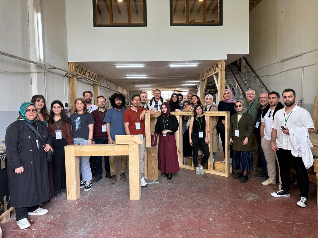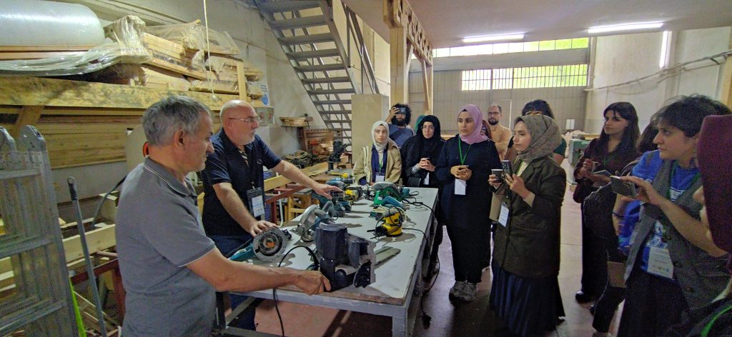 Düzce Gölyaka Tomruk Deposu ve yerel bir kereste fabrikasında uygulamalı olarak gerçekleştirilen eğitimde; ahşap kaynaklarının tanıtımı, ahşap malzeme bilgisi, mimari tasarım prensipleri ve yapısal tasarımın temel ilkeleri katılımcılarla detaylı bir şekilde paylaşıldı.