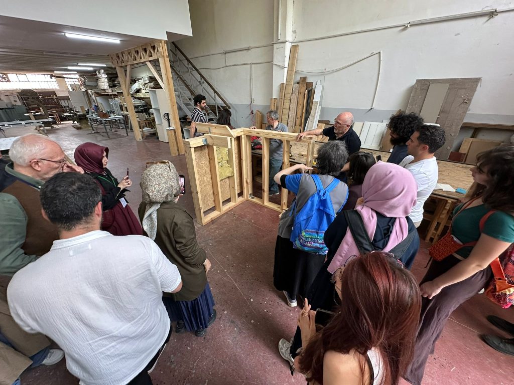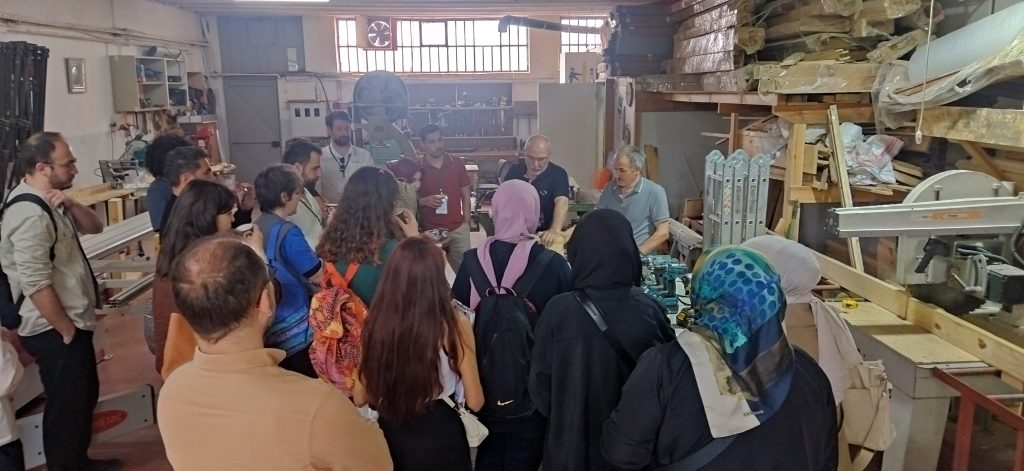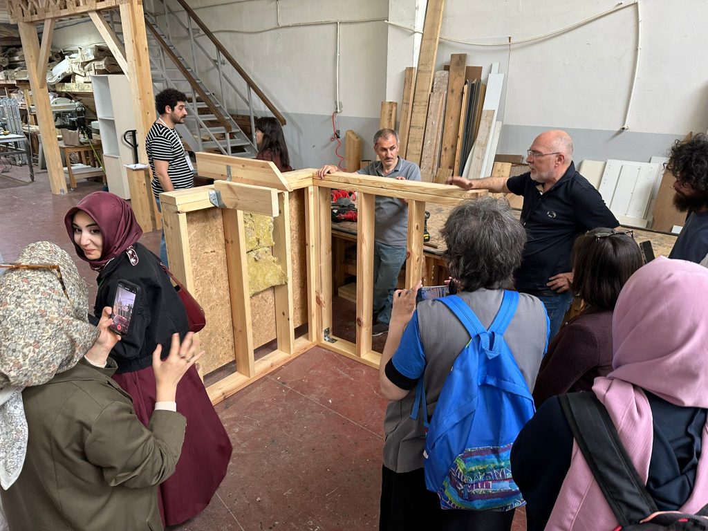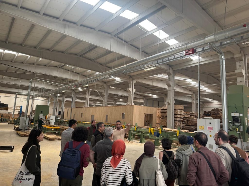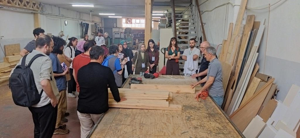 Düzce Gölyaka Tomruk Deposu ve yerel bir kereste fabrikasında uygulamalı olarak gerçekleştirilen eğitimde; ahşap kaynaklarının tanıtımı, ahşap malzeme bilgisi, mimari tasarım prensipleri ve yapısal tasarımın temel ilkeleri katılımcılarla detaylı bir şekilde paylaşıldı.